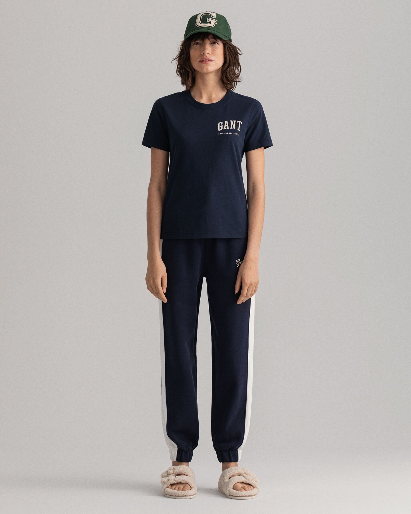 Hoodien är inspirerad av 80-talets retromode med paneler i kontrasterande färgblock och GANT i skrivstil på vänster ben. Den har rynkad resår med dragsko i midjan, framfickor vid sömmarna och resårmuddar. Styla med matchande hoodie för en mysig statementlook eller med jeans för en ledig look.