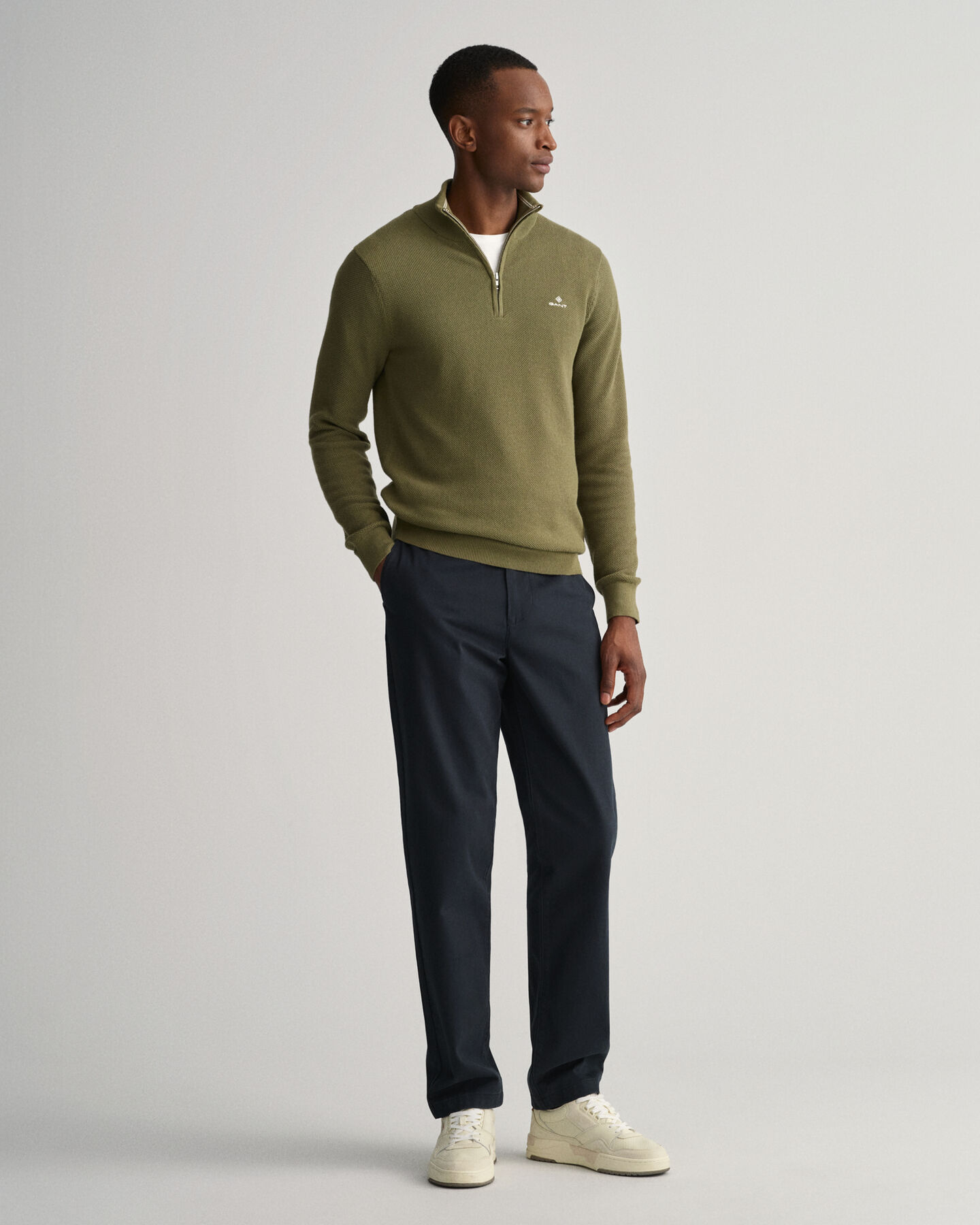 Half-zip tröja i bomullspiké