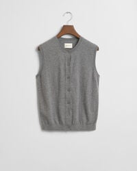 Den här stickade västen är tillverkad i en supermjuk bomulls- och kashmirblandning och är ett basplagg för säsongen. Västen har en smal passform och klassisk rund halsringning. Den har ribbstickning i krage och nederkant och ärmslut, med knappslå med knappar och en GANT-logotyp broderad i nederkant.