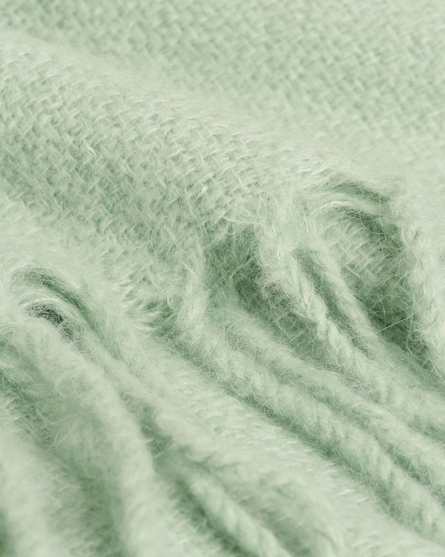 En klassisk vinterhalsduk med fransar i en mjuk mohair- och ullblandning som matchar våra mohairmössor.