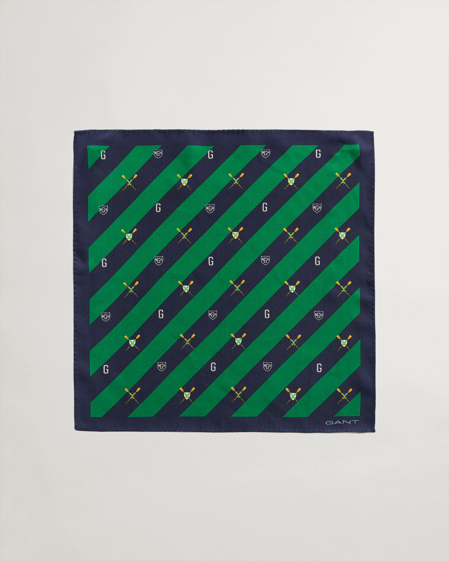 Sidennäsduken tillför ett preppy inslag till jobbgarderoben och har ett marint inspirerat mönster med åror och diagonala ränder inramade av en enfärgad bård.