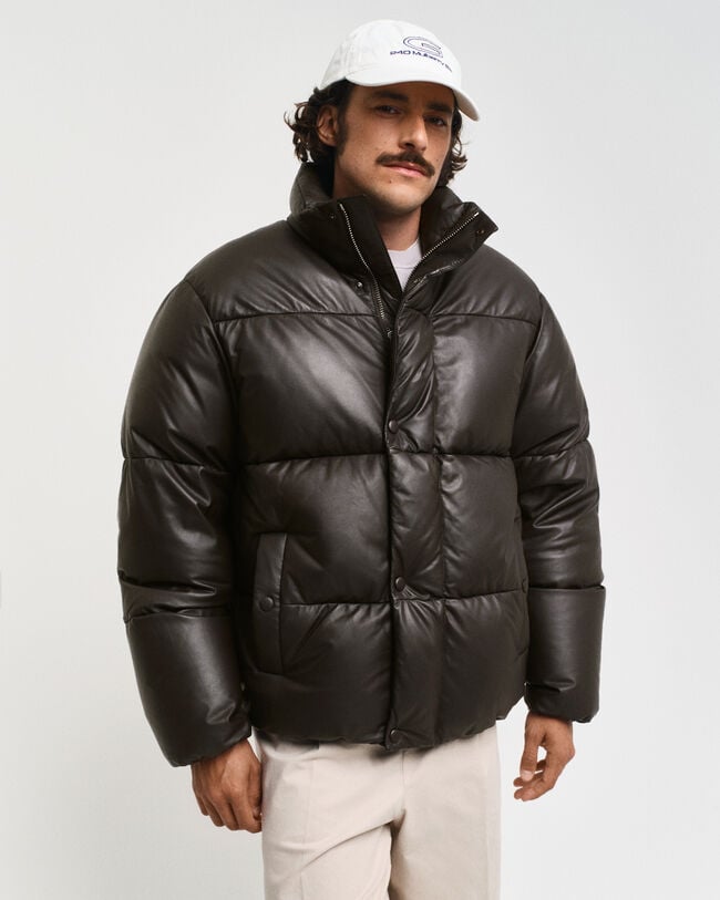 Det här plagget tillhör vår exklusiva kapselkollektion: GANT 240 Mulberry Street. Kapselkollektionen hedrar vårt arv som pionjärer inom American Sportswear genom att ta preppy klassiker och utveckla dem till nya silhuetter gjorda av de finaste tygerna. Den här puffjackan är inspirerad av äldre tiders skidjackor i mjukt lammskinn med stoppning av gåsdun och fjäder. Den har en relaxed fit som slutar vid höften. Den har detaljer som täckt dragkedja fram, skinnklädda tryckknappar, ståkrage och resår i fåll och ärmslut. Jackan är helfodrad och är försedd med två fickor med dragkedja för extra funktionalitet. Den har dun med fyllnadsgrad 750 och är kraftigt isolerad. Plagget har en relaxed fit. För en mer figurnära passform rekommenderar vi att du väljer en mindre storlek.