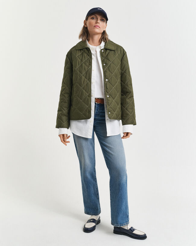 Den här quiltade jackan är gjord för att användas hela säsongen och har en klassisk normal passform och slutar strax ovanför höfterna. Den har en vattenavvisande yta och är lätt vadderad med spread-krage, passpoalfickor och tryckknappar fram med logotyp.