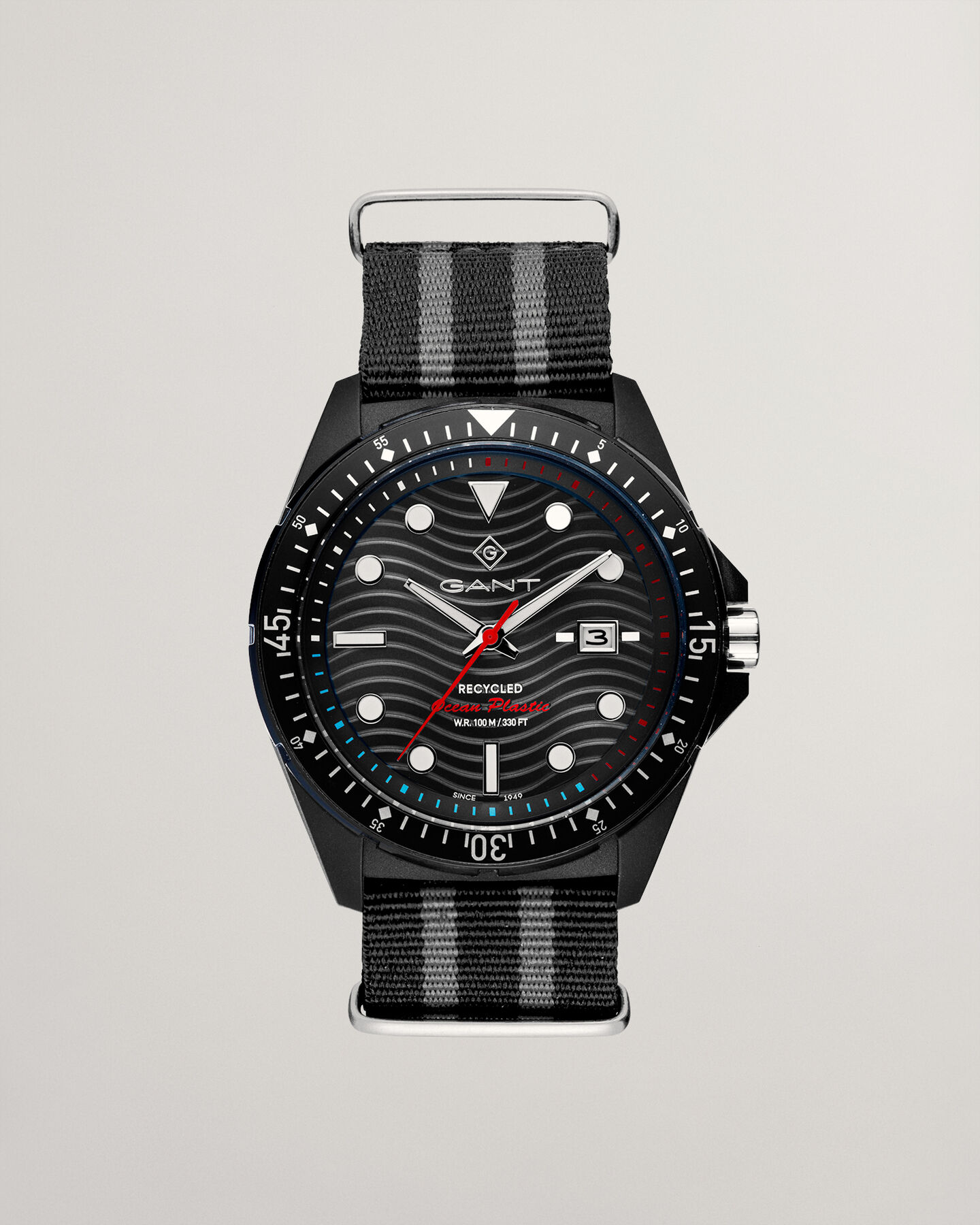 Vår herrkollektion med sportiga och klassiska klockor kombinerar innovation med förstklassigt hantverk för att skapa bestående favoriter som är inspirerade av vårt motto Never Stop Learning. Denna klocka är är gjord i plastavfall från havet, med natoarmband. Den har tre visare samt datumfunktion.