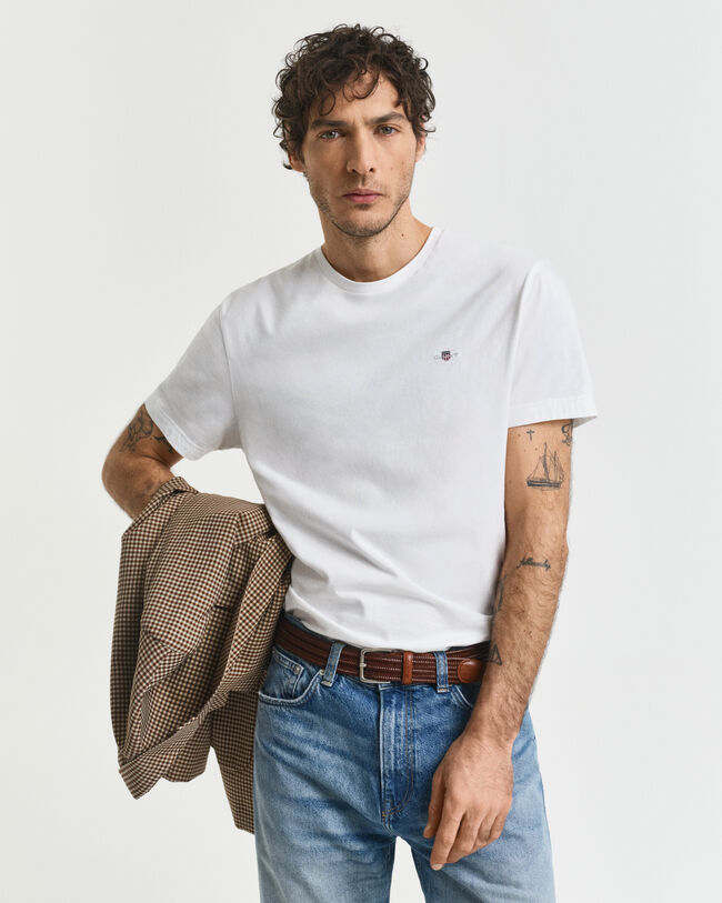 T-shirt med en liten sköldlogo broderad på bröstet, tillverkad i bomull med en fin ribbstickning i halsringningen för ultimat komfort.