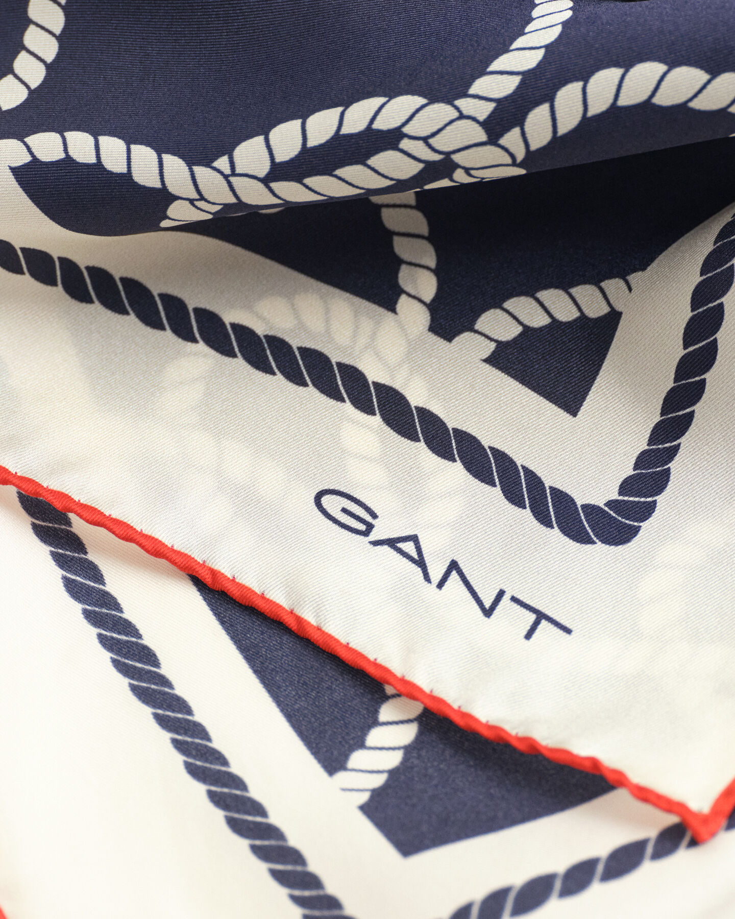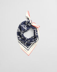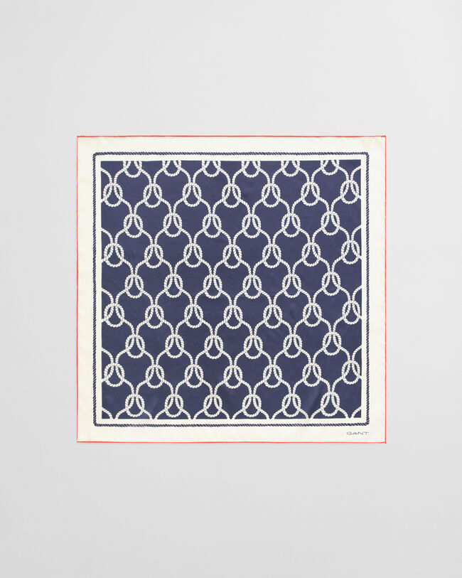 Sjal i 100% silke med ett säsongsbetonat repmönster och en kontrasterande bård med en GANT-logotyp broderad i nederkanten.