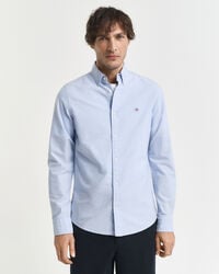 En mångsidig, klassisk och elegant skjorta med vårt ikoniska sköldbroderi. Den är gjord i slitstark bomull med button down-krage, rundad fåll, justerbara manschetter samt efterveck med vår klassiska locker loop i ryggen.
