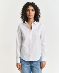 Klassisk oxfordskjorta med smal passform, framtagen i högkvalitativ bomull, exklusivt framtagen med extra stretch för GANT. Skjortan har point-krage, rundad fåll, vår klassiska locker loop i ryggen samt vår ikoniska sköldlogo broderad på bröstet.