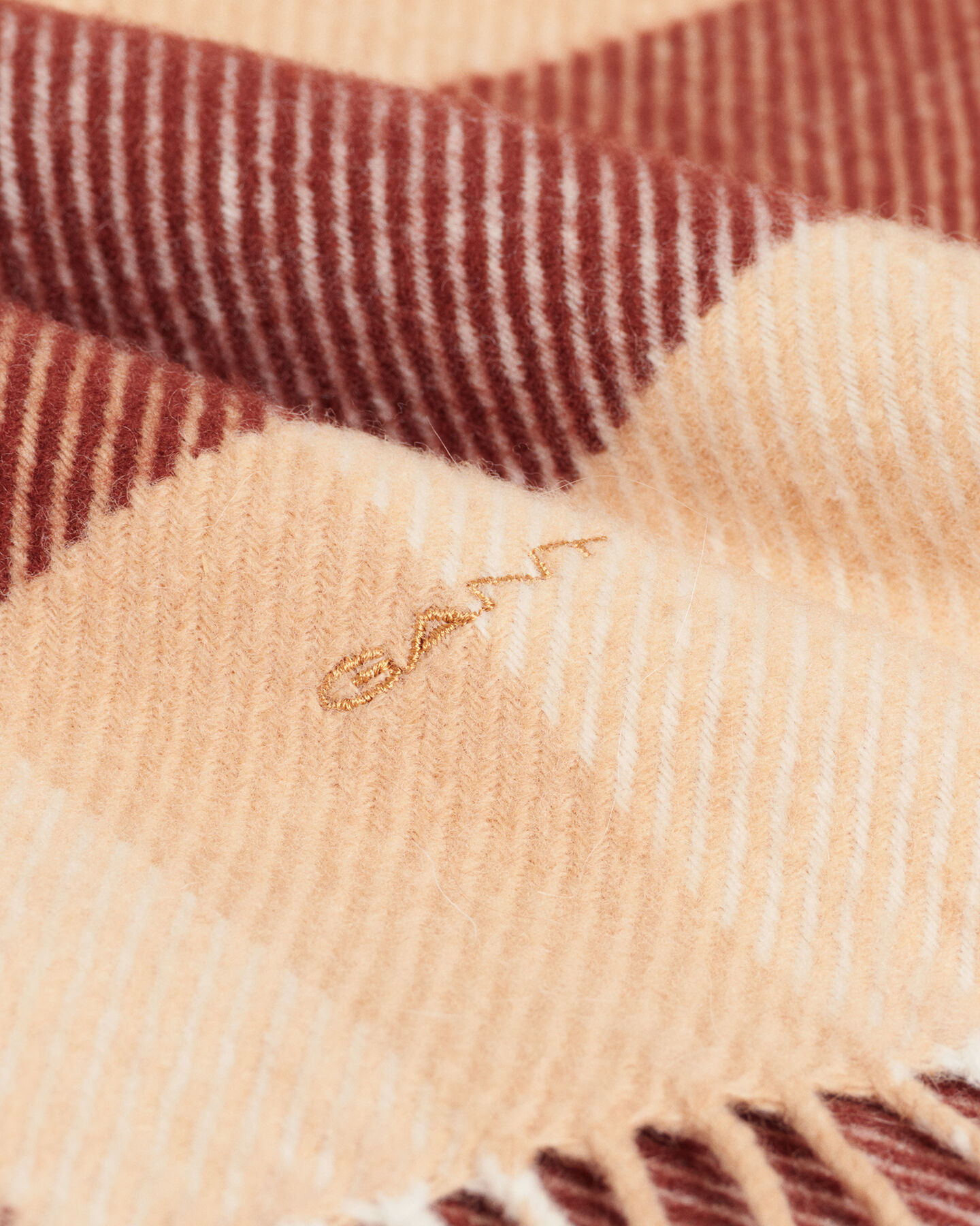 Den här mjuka yllehalsduken har ett överdimensionerat rutigt mönster i klassiska, säsongsbetonade färger.