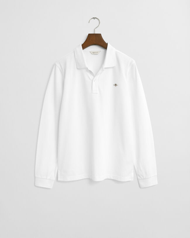 En GANT-ikon som nu kommer i tonårsstorlek. Den har en relaxed fit i unisexmodell och är gjord i 100% bomull med mjuk pikékvalitet. Den är mönstrad med ränder och har en autentisk vävd krage, långa ärmar och vår klassiska GANT-logotyp broderad på bröstet.